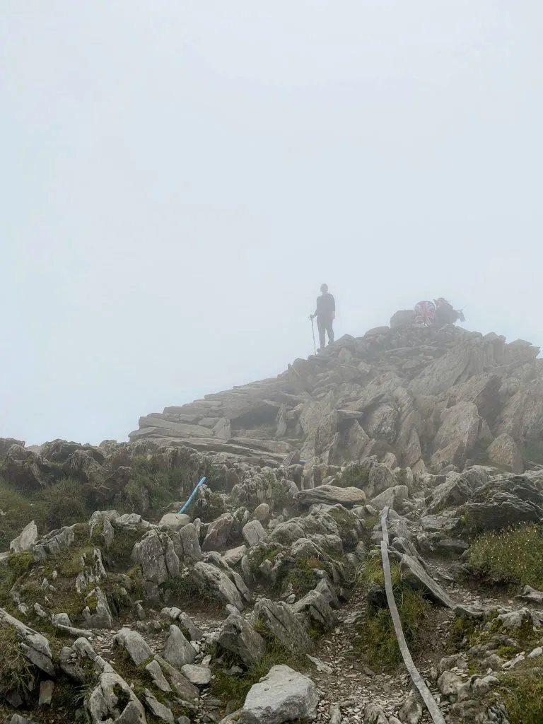 It opens back out as you reach the summit and it will start to get busier as the other routes up start to meet the Rhyd Ddu path. You’ll soon pass the cafe and train stop (I didn’t even believe this was real until I saw it – a cafe on top of a mountain just seems bizarre!) and you’ll spot the plinth with the trig point on (and no doubt the queue of people wanting to touch it).