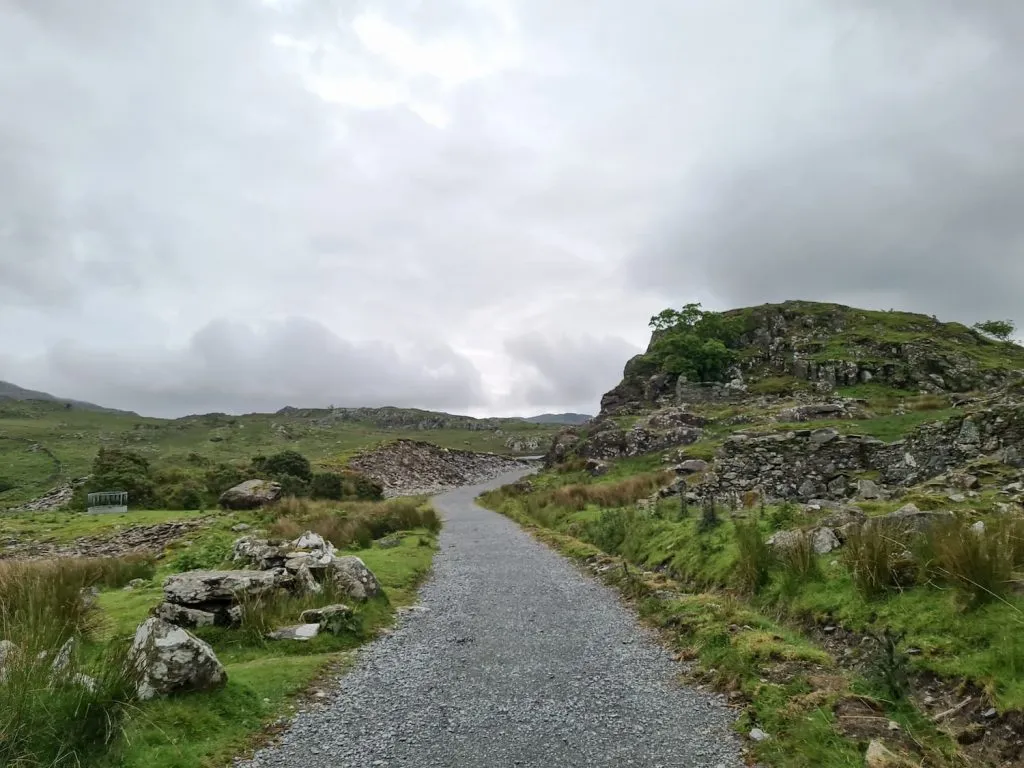 We followed the Ranger path and then headed off across the fields and moorland – in hindsight we should have stuck to the road because this way was so wet and boggy! It took us ages to pick our way through the bogs and mud. We did get to walk through the remains of the Ffridd-glyn Slate Quarry and found a beautiful waterfall at Afon Treweunydd, but still. Only try this way if it’s been dry for a prolonged period, or you don’t mind getting potentially muddy and wet.