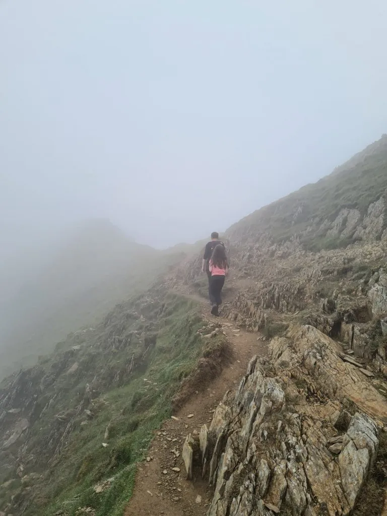 We parked at the Rhyd Ddu car park and set off along the trail. For the most part it’s really easy to follow, being either paved, or steps, or rocky underfoot but in good weather the path is quite obvious. The path climbs gently for the first mile over the old track that served the Bwlch Cwm Llan slate quarry, but soon becomes steeper as you reach Llechog, with the last third being quite scrambly over Bwlch Main. It’s definitely not as scary as Crib Goch but you will need a good head for heights on a clear day as it’s quite narrow in places.