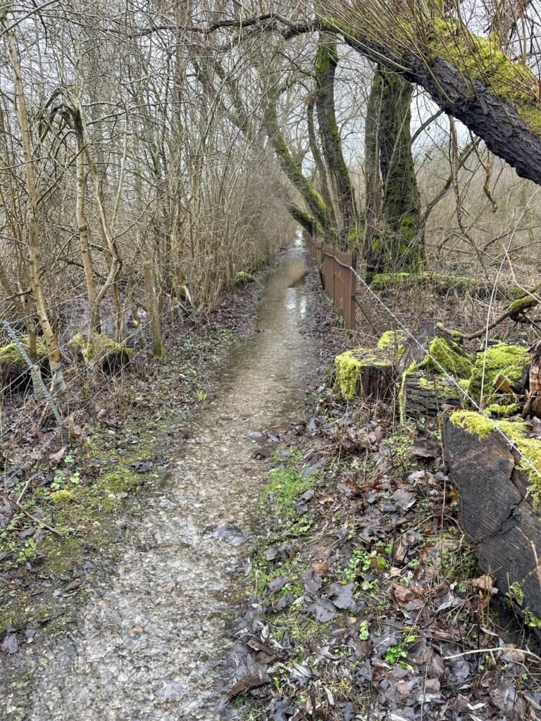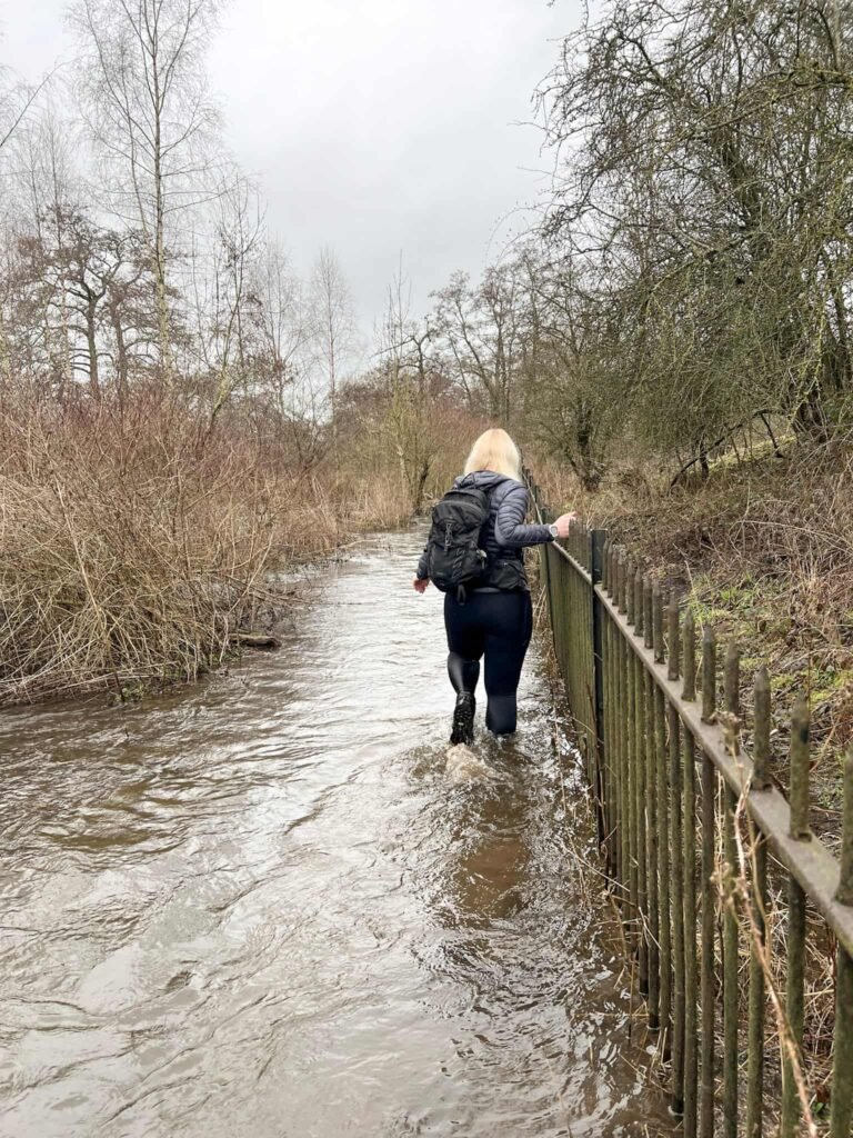 I’m stubborn, so we persevered along the flooded path to reach the lane! We had VERY wet feet.