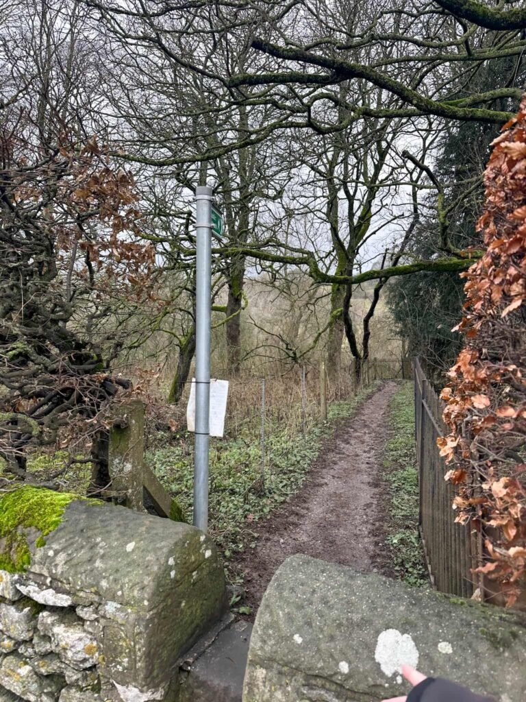 This track runs up to a gate, and then there’s a stile to head into the field. The route runs over the field and then out onto Youlgrave Road.