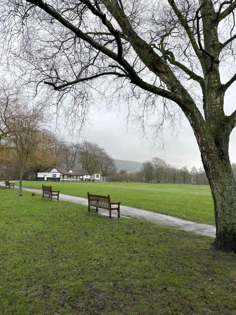 The path runs past a field and around the back of some houses, before rejoining Coombs Road and then it’s just a short distance back to the car park.