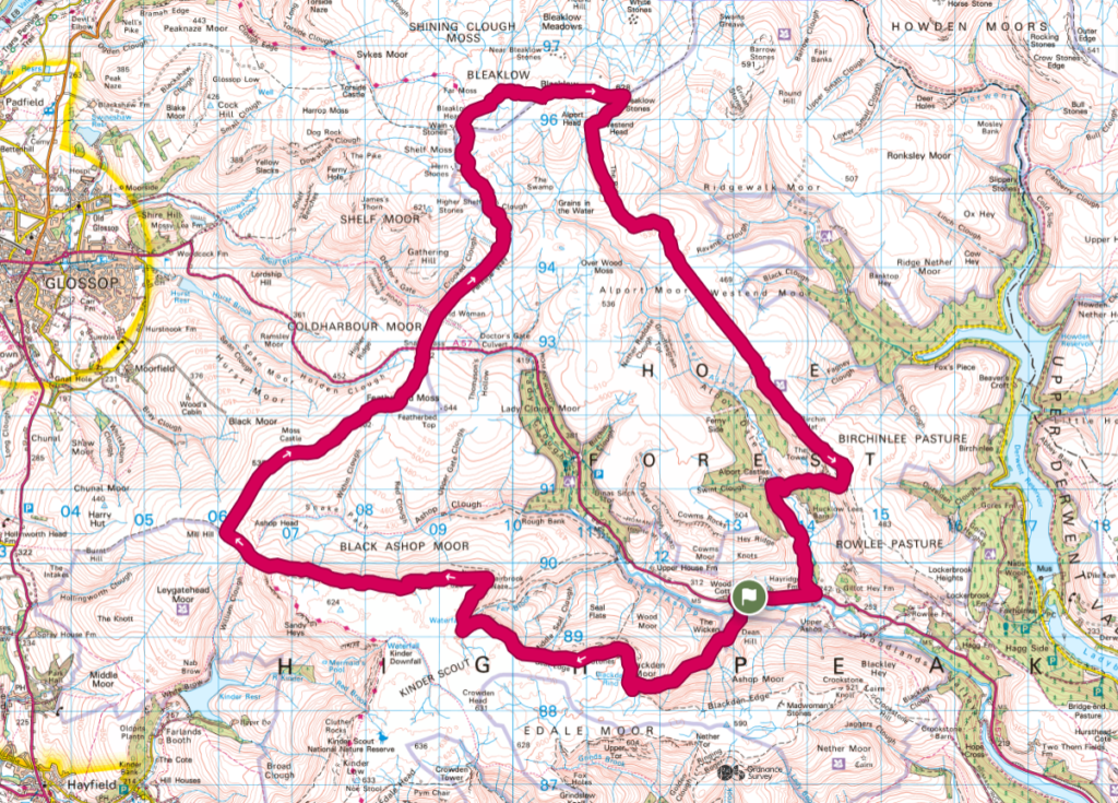 • Start point – Layby near the entrance to Blackden Brook on the Snake Pass
