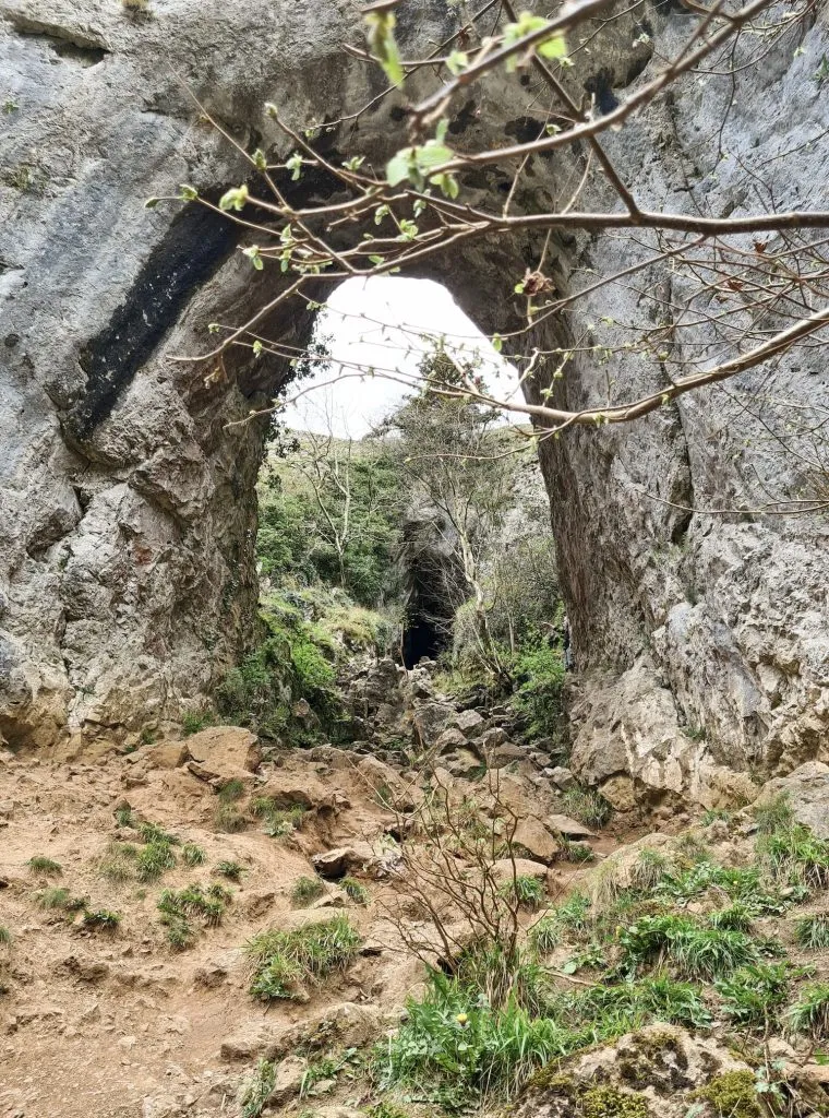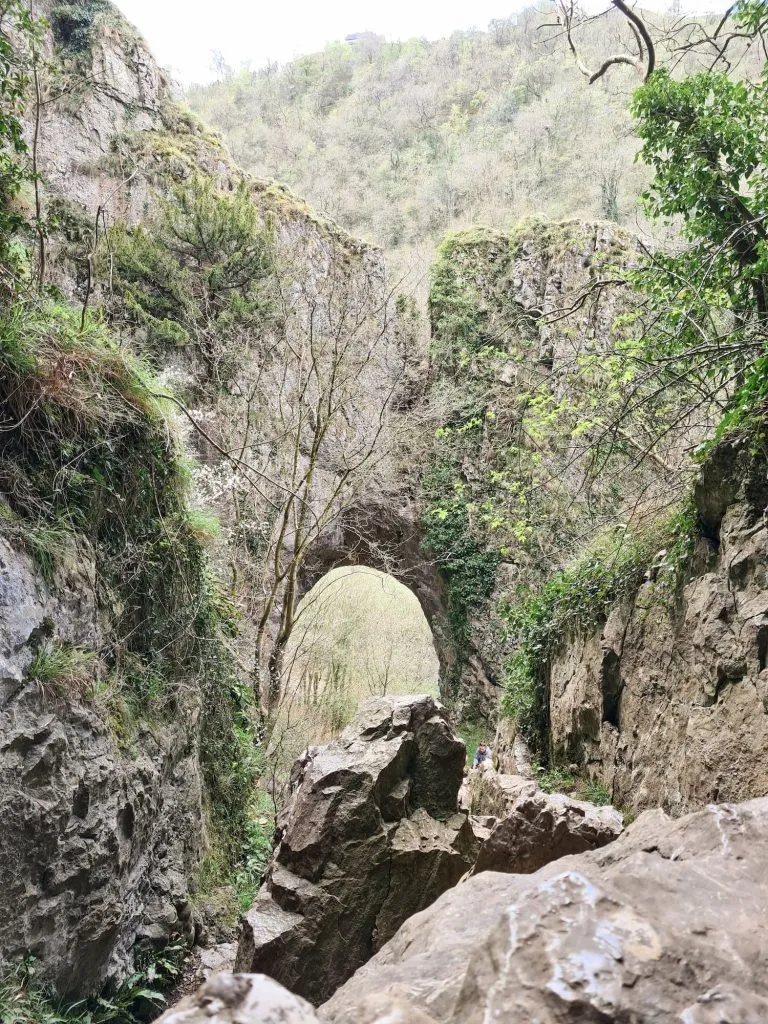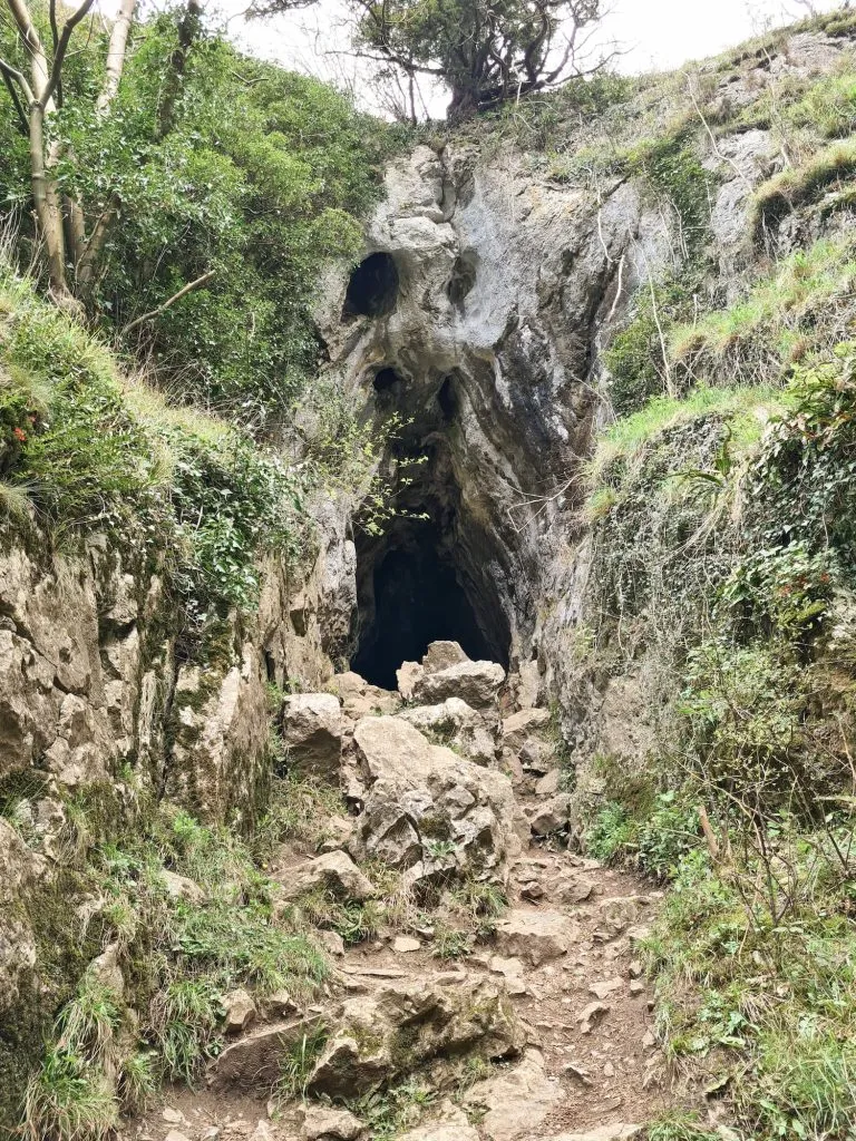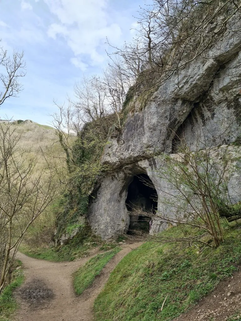 Heading down towards the River Dove, we passed by some amazing cave structures. These are huge! Dovedale is full of hidden caves. We first explored the Dove Holes, two ancient caves in the hillside. Following the river, we headed south-east and found the amazing Reynards Cave in Dovedale. This natural limestone arch leads to further caves but is a tricky scramble to access. You have to climb using your hands at some points, so it’s not for those with mobility issues unfortunately. The limestone can also become very slippery in wet conditions.
