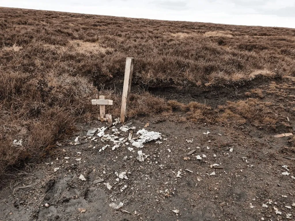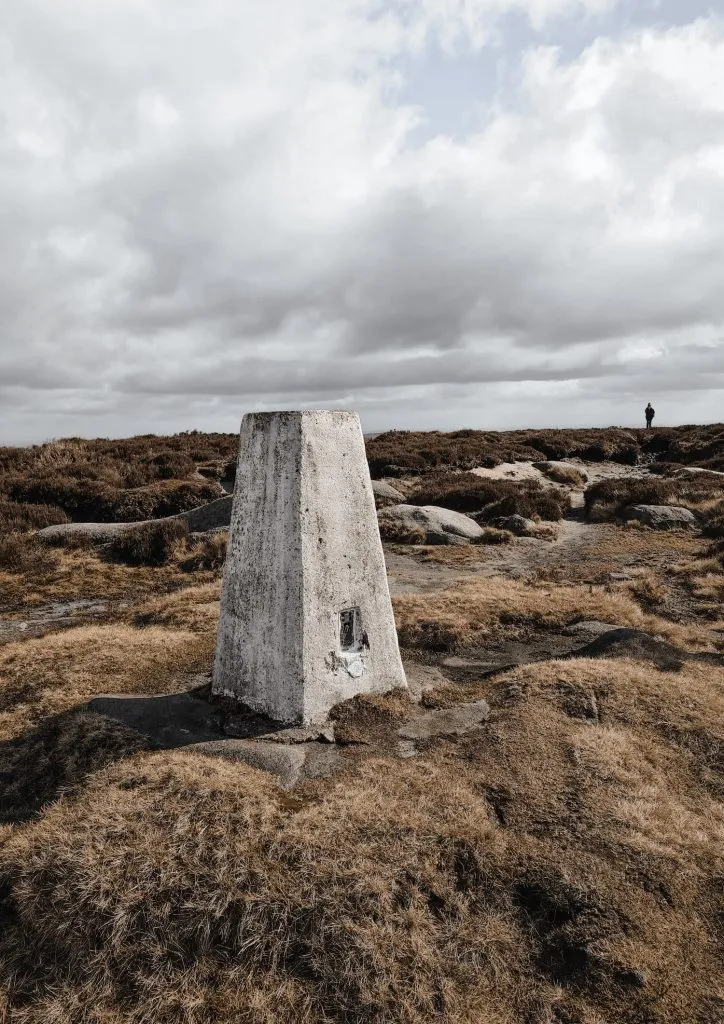 We walked for about a mile, passing the intriguing Crow Stones on the horizon and a plane crash site with small memorial, and then reached Outer Edge trig point, which is sat in it’s own peat bog moat. Lovely. There are some stepping stones in the peat if you want to touch the trig itself!