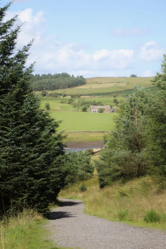 The road to the trail runs alongside Lower Black Moss Reservoir and Upper Black Moss Reservoir and is an easy tarmac road. You get great views of Pendle Hill from this road, and if you fancy climbing Pendle Hill check out this Pendle Hill circular walk. The trail is accessed through a gateway into the woods and is signposted.